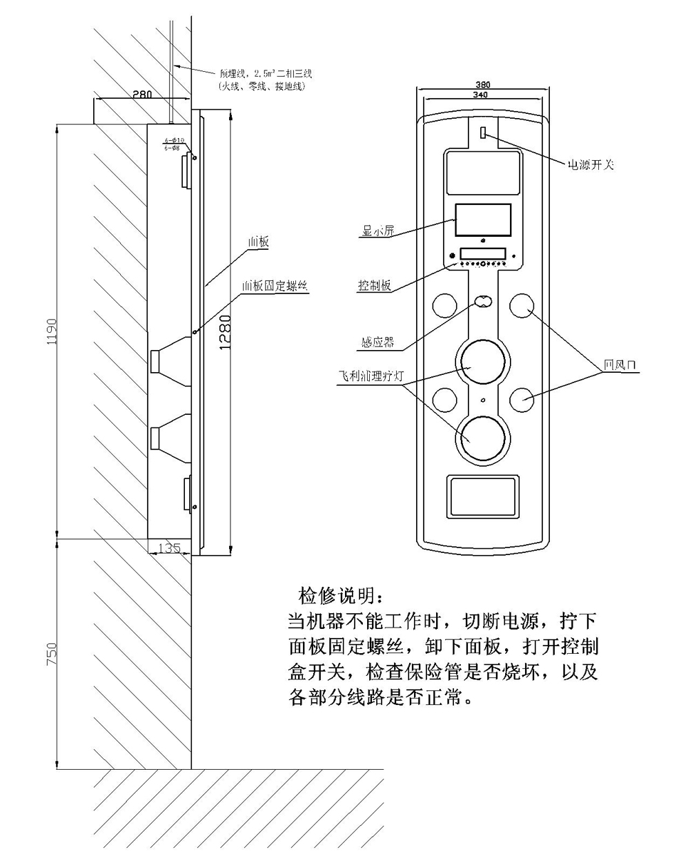 墙面嵌入式干身机